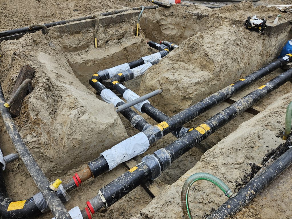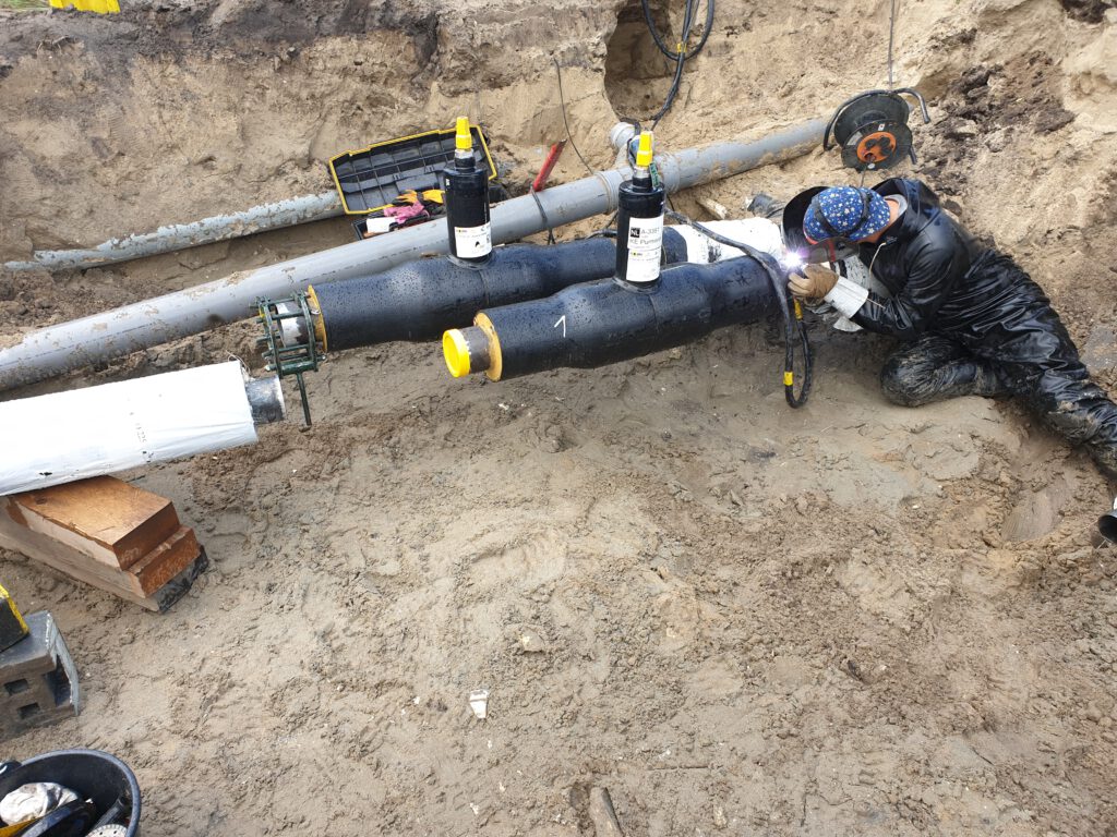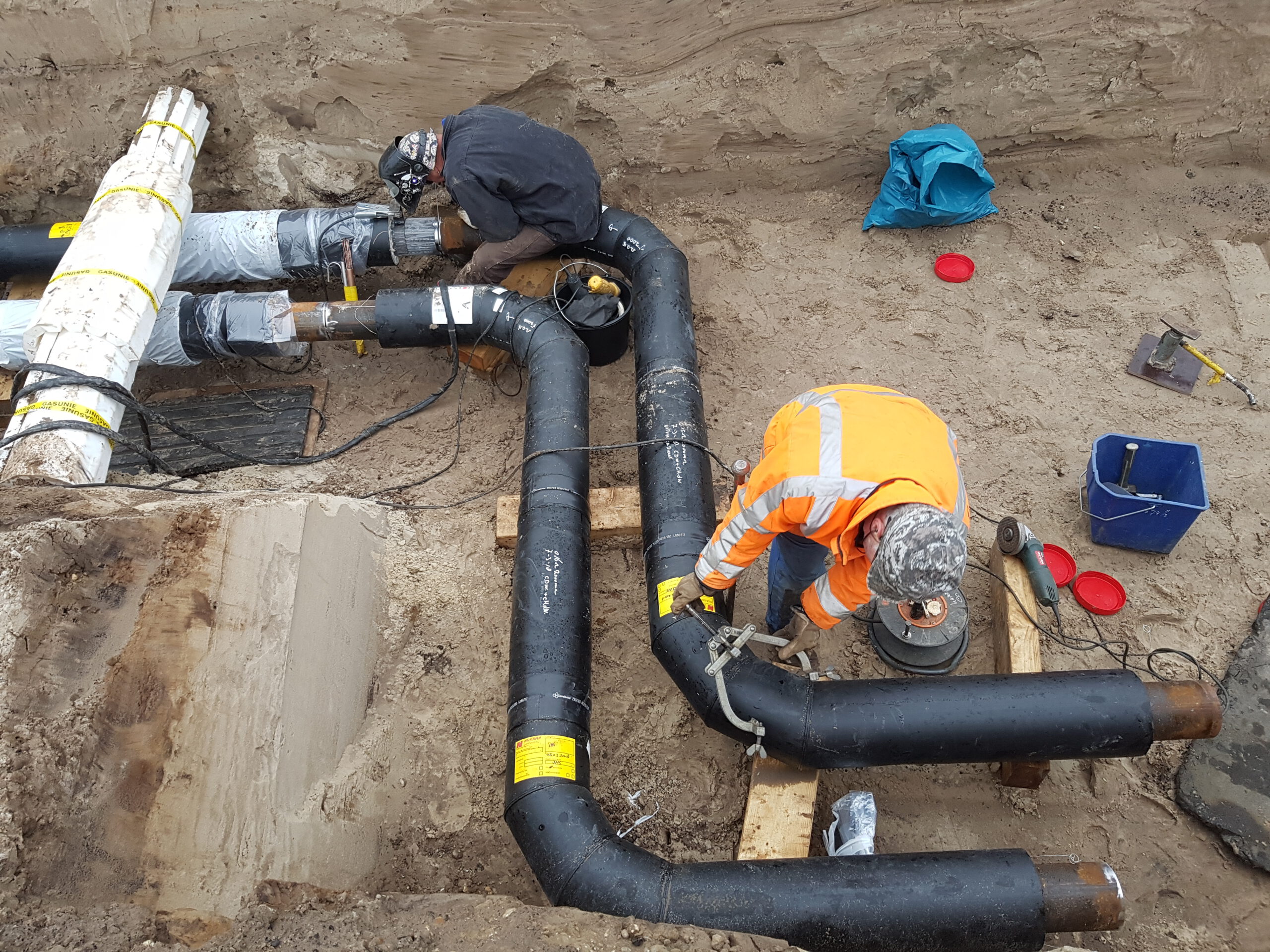 Voor het aanleggen van staal/pur/PE leidingen worden de stalen leidingen aan elkaar gelast. Bij het maken van passtukken wordt het isolatiemateriaal rondom de buis verwijderd, waarna de bevel gemaakt kan worden. Zodra het leidingwerk aan elkaar is gelast wordt de las geïsoleerd.